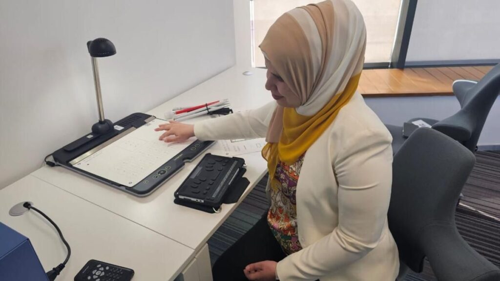 Alaa Sami’ningörme engelli eski bir öğrenci olan Reem, bu teknolojinin dönüştürücü etkisini anlattı. “Bu makinelerden birini ilk kullandığımda bir mucize gibi hissettim. Göremeyen öğrenciler için bir oyun değiştirici “dedi. Mezun olduktan sonra artık üniversitede gönüllü olarak görme engelli öğrencilere Braille öğretiyor.Reem, öğrencilere uygulamalı eğitimde yardımcı olan dikkate değer bir başka aracın altını çizdi. “Mimarlık gibi pratik çalışmaları destekleyen bir makinemiz var. Mizanpajları tarar ve bunları kabartarak görme engelli öğrencilerin kat planlarını dokunarak anlamalarını sağlar. Başka bir cihaz olan ‘Melek Gözü’, metni hem arapça hem de ingilizce okuyarak içeriğin anlaşılmasını kolaylaştırıyor “dedi.