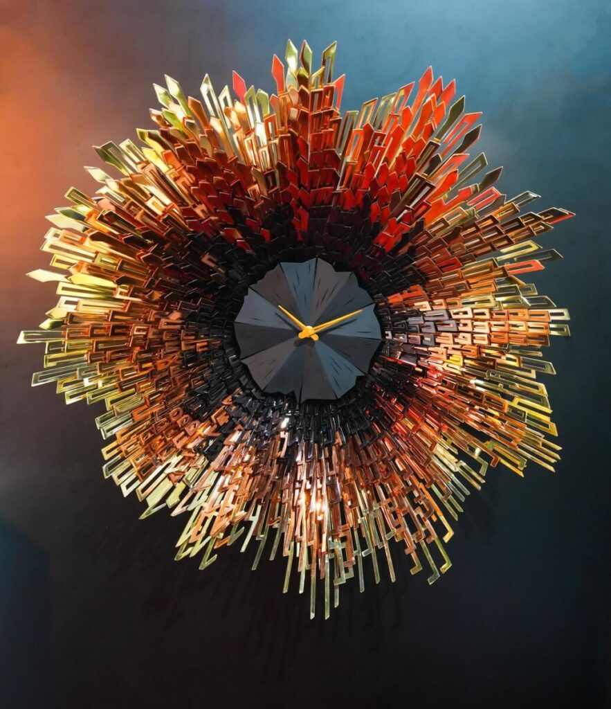 In Big Bang , Amjad has used hidden elementsÖrneğin, İllüzyon adı verilen yaklaşan parçalarından biri, Amjad’ın okunamaz görmek istediği bir saattir. Başka bir deyişle, zamanı söylemeyen bir saat olacaktır. “Bilimde zamanın bir yanılsama olduğunu öne süren bir kavram var. İşlev daha sonra burada yapmaya çalıştığım şeye ikincil hale gelir. Gerçekçi olalım – eğer insanlar gerçekten zaman okumak istiyorlarsa, tek yapmaları gereken telefonlarına veya saatlerine bakmak. Bu yüzden büyük saatler, bilimin olduğu kadar sanatın da evliliği olan bir işleve hizmet etmek zorunda “diyor Amjad.Ve bazen, izleyicinin daha ince nüansları fark etmesi için kasıtlı olarak gizli motifler tutar. Örneğin Big Bang’de gizli sayılar vardır. “Kozmoloji koleksiyonunda, onları daha ilginç kılan gizli tasarım öğeleri var” diyor. “Tüm projelerimin teması, daha sonra zamanı anlatmayan heykellere dönüşen zamana odaklanıyor. Fakat zaman son derece derin bir konudur. İngilizce dilinde en çok kullanılan zamir olduğu söylendi.”