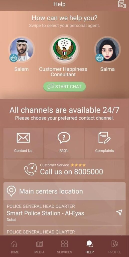 Sharjah, Ajman, Fujairah, Umm Al Quwain ve Ras Al Khaimah’da ikamet ediyorsanız, emirliğinizdeki trafik ve ehliyet departmanını ziyaret ederek akıllı el koyma hizmetini talep etmeniz gerekir.Emirliğinizdeki servis merkezlerini İçişleri Bakanlığı uygulaması aracılığıyla kontrol edebilirsiniz:Birleşik Arap Emirlikleri Geçiş Kartınızı kullanarak İçişleri Bakanlığı uygulamanıza giriş yapın, Gösterge tablosunda ‘Hizmetler’ ve ‘Profil’ arasında ‘Yardım’a dokunun