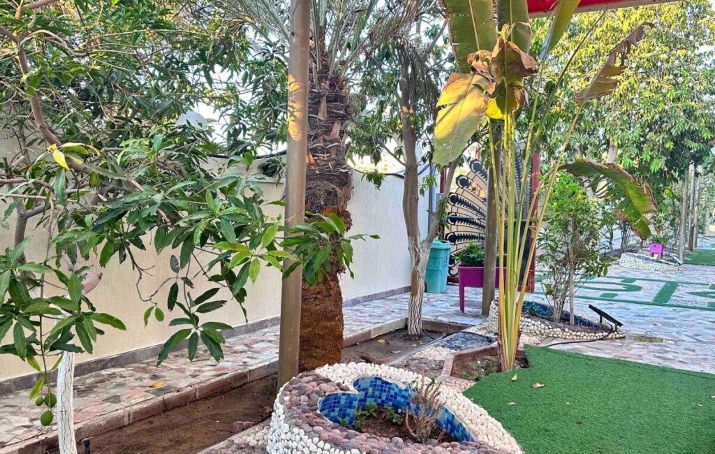 Al Nuaimi, Ras Al Khaimah’ın ikliminde gelişen Güney Afrika’dan tohumlar ekerek bahçesini zenginleştirdi.Mango, portakal, nar, üzüm ve limon gibi farklı meyveler üreten çeşitli ağaçları vardır. Evinin içinde ve dışında birçok bitki var.Al Nuaimi, “Evden geçen herkes dışarıda yetişen meyveleri toplayabilir.”