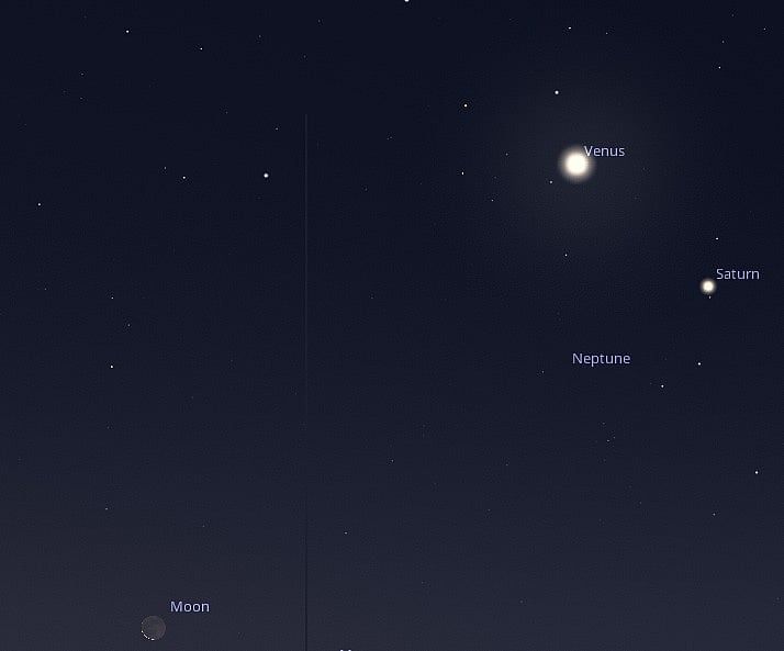 Bununla birlikte, Venüs ile Satürn arasındaki hilale kıyasla görünen mesafe nispeten geniştir — bu nedenle İbrahim, “sıkı bir gülen yüz oluşturmayacaktır” diye ekledi.