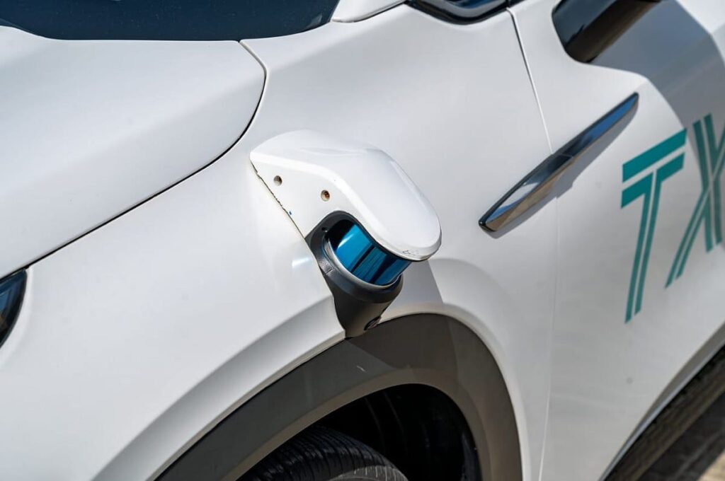 Her araç, lidar, radar, GPS ve yüksek çözünürlüklü kameralar dahil olmak üzere üst düzey teknolojiyle donatılmıştır ve araca çevresinin 360 derecelik bir görünümünü vermek için birlikte çalışır.