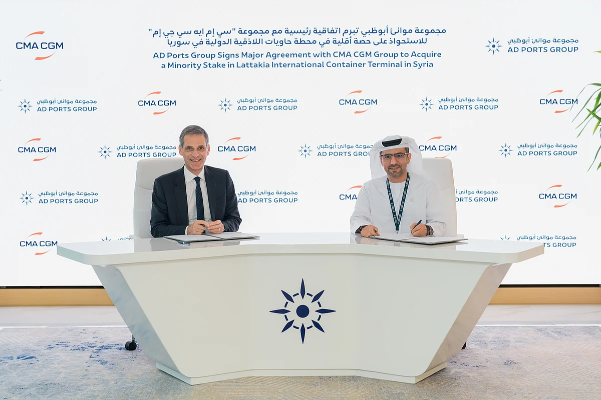 AD Ports Group’tan yapılan açıklamada, Abu Dabi merkezli firmanın Fransız nakliye devi CMA CGM ile Lazkiye Uluslararası Konteyner Terminalinde yüzde 20 hisseye imza attığı belirtildi.