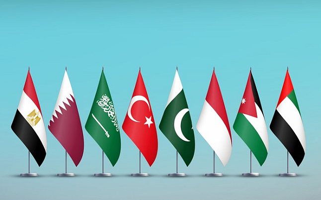BAE, Suudi Arabistan, Ürdün, Endonezya, Pakistan, Türkiye, Katar ve Mısır dışişleri bakanları, Hamas’ın ABD Başkanı Donald Trump’ın Gazze’ye karşı savaşı sona erdirme, hayatta veya ölü tüm rehineleri serbest bırakma önerisi ve uygulama mekanizmalarına ilişkin müzakerelerin derhal başlatılması konusunda attığı adımları memnuniyetle karşıladı.