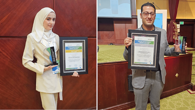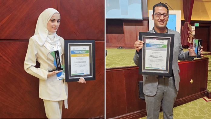 Birincilik ödülü, geri dönüştürülebilir güneş pilleri üzerine yaptıkları çalışmalardan dolayı Bayan Alradib, Farah Adnana ve Samer H Zyoud’a verildi. Ajman Üniversitesi’nde enerji ve yenilenebilir enerji konusunda uzmanlaşmış dördüncü sınıf mühendislik öğrencisi Bayan Alradib, araştırmalarının geleneksel güneş pillerine çevre dostu bir alternatifi nasıl araştırdığını açıkladı.