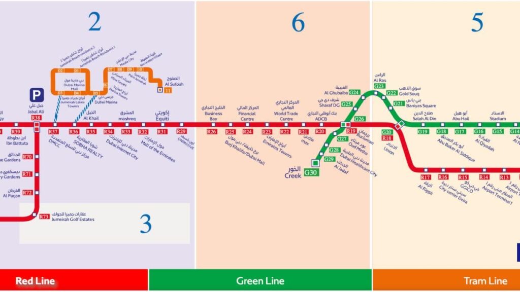 Aşağıda referansınız için Dubai Metrosunun bir haritası bulunmaktadır: