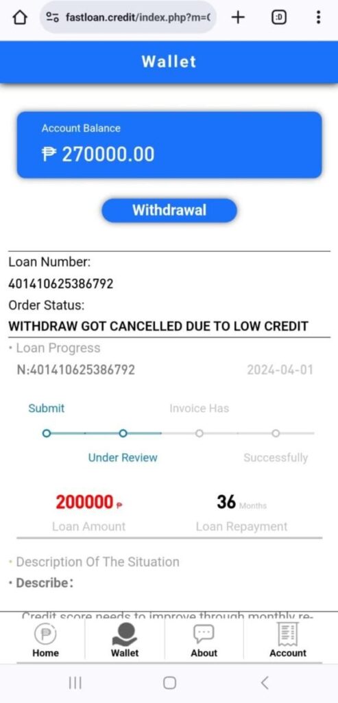 Cristy, iddia edilen borç verme şirketine ulaştı ve işlem ücreti olarak 20.000 P (yaklaşık 1.250 Dh1) yatırması söylendi ve başka bir gereklilik gerekmedi.Dedi ki: “Bir arkadaşımdan borç aldım çünkü hızlı bir 200.000 P kredisi almam gerekiyordu (12.500Dh12). Maaş belgesi veya banka ekstresi gibi başka bir gereklilik yoktu – bu yüzden ‘vay bu harika’ diye düşündüm – ve hızlı kredi bırakma sözü verdiler.”Borç veren şirket, ‘işlem ücretinin alındığını hemen doğruladı.’”Ancak birkaç gün sonra, ‘düşük kredi’ nedeniyle kredimin iptal edildiğine dair bir bildirim aldım,” dedi Cristy, “Düşük kredi notunu kaldırmak için başka bir 50.000 Sterlin (3.125 Sterlin) yatırmam gerektiği söylendi ve ardından P200,P50.000 depozitosu da dahil olmak üzere 000 derhal serbest bırakılacaktı.”