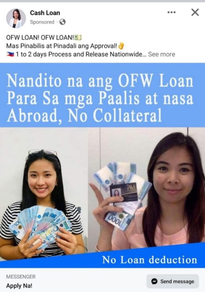 Ülkenin geri kalanı tatildeyken, çevrimiçi dolandırıcılar bu günlerde daha yoğun hale geldi. En son bir sahtekarlığa ’kredi dolandırıcılığı’ denir; burada şüpheli bir borç verme şirketi, mağdurlardan önce bir krediyi güvence altına almak için işlem ücreti olarak para yatırmalarını ister ve ardından fonu serbest bırakmak için başka bir ödeme talep eder.Bu, Dubai’deki bir restoranda vardiya amiri olarak çalışan Filipinli bir gurbetçi olan 35 yaşındaki Cristy’nin başına geldi.Khaleej Times’a şunları söyledi: “Facebook’da ofw’lere (denizaşırı Filipinli işçilere) hızlı teminatsız kredi veren sponsorlu bir reklam gördüm. Bu fırsatı yakaladım çünkü evde acil bir durum vardı ve paraya ihtiyacım vardı.”