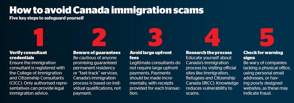 Hileli faaliyetlerdeki artışa yanıt olarak Kanada hükümeti, başvuru sahiplerini gerçek olamayacak kadar iyi görünen tekliflere karşı uyaran halka açık bir dolandırıcılık uyarısı yayınladı. Resmi web siteleri tavsiyelerde bulunur:Vize veya Kanada vatandaşlığına başvurmak için bir göçmenlik temsilcisi tutmanıza gerek yoktur.Göçmenlik temsilcilerinin Kanada hükümet yetkilileriyle özel bağlantıları yoktur ve vize garantisi veremezler. Yalnızca Kanada büyükelçilikleri, yüksek komisyonları ve konsolosluklarındaki yetkili memurlar vize verebilir.Başvurunuzun reddedilmesine neden olacağından, sahte belgeler kullanmak için cazip olmayın.Çevrimiçi dolandırıcılıklara ve sahte web sitelerine karşı dikkatli olun. Kanada Vatandaşlık ve Göçmenlik (CIC), tüm vize türleri için ücretsiz başvuru formları ve rehberler sağlar.Vize işlem ücretleri küresel olarak standartlaştırılmıştır. Yerel para birimlerindeki ücretler, resmi döviz kurlarına göre eşdeğer Kanada doları tutarını yansıtır.Kanada vize büroları hiçbir zaman kişisel banka hesaplarına veya özel para transferi hizmetleri aracılığıyla para transferi talep etmeyecektir.Kanada hükümeti defalarca hiçbir danışmanın vize garantisi veremeyeceğini vurguladı – yalnızca elçilik ve konsolosluklardaki yetkili yetkililer bu yetkiye sahip. Ne yazık ki, birçok kurban bunu fark ettiğinde, çoğu zaman çok geçtir.