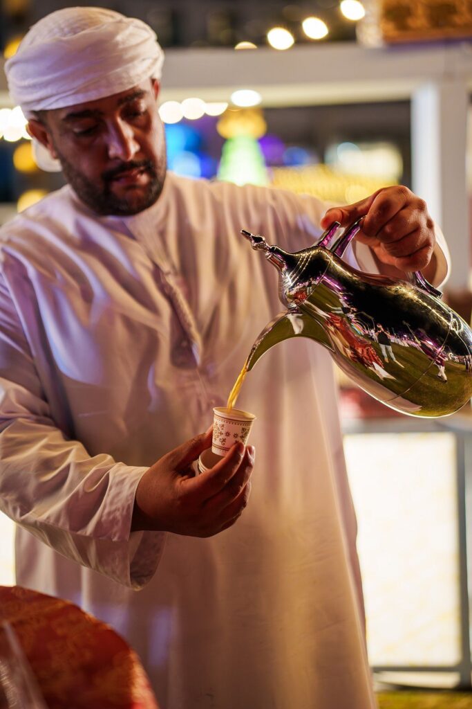 Canlı ud müziği ve Arap kahvesi yapma istasyonu