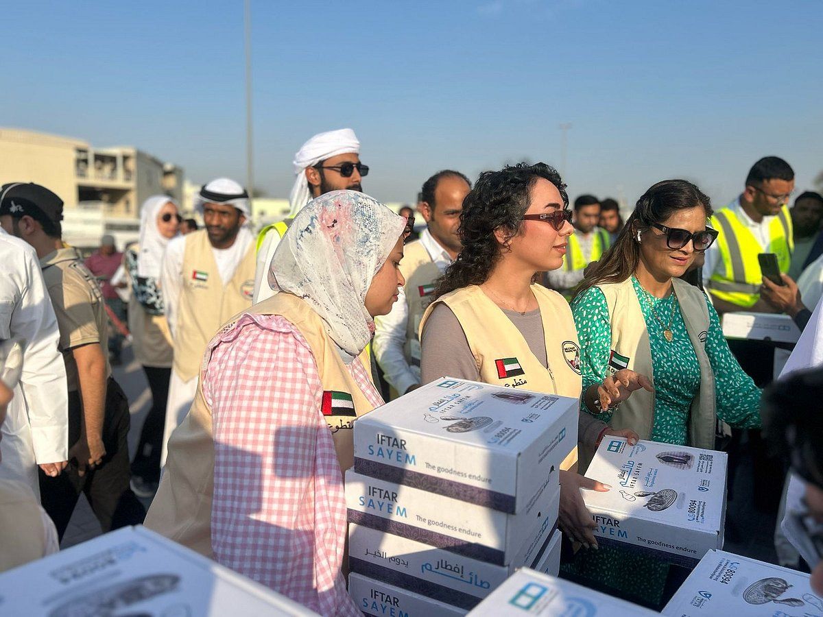Gayrimüslim gönüllüler de, Dubai’de İkamet ve Yabancılar İşleri Genel Müdürlüğü (GDRFA) girişimi olan “İyilik Otobüsü” kapsamında emekçiler arasında 1.000 iftar yemeği dağıtmak için oruçlu Müslüman akranlarına katılıyor.