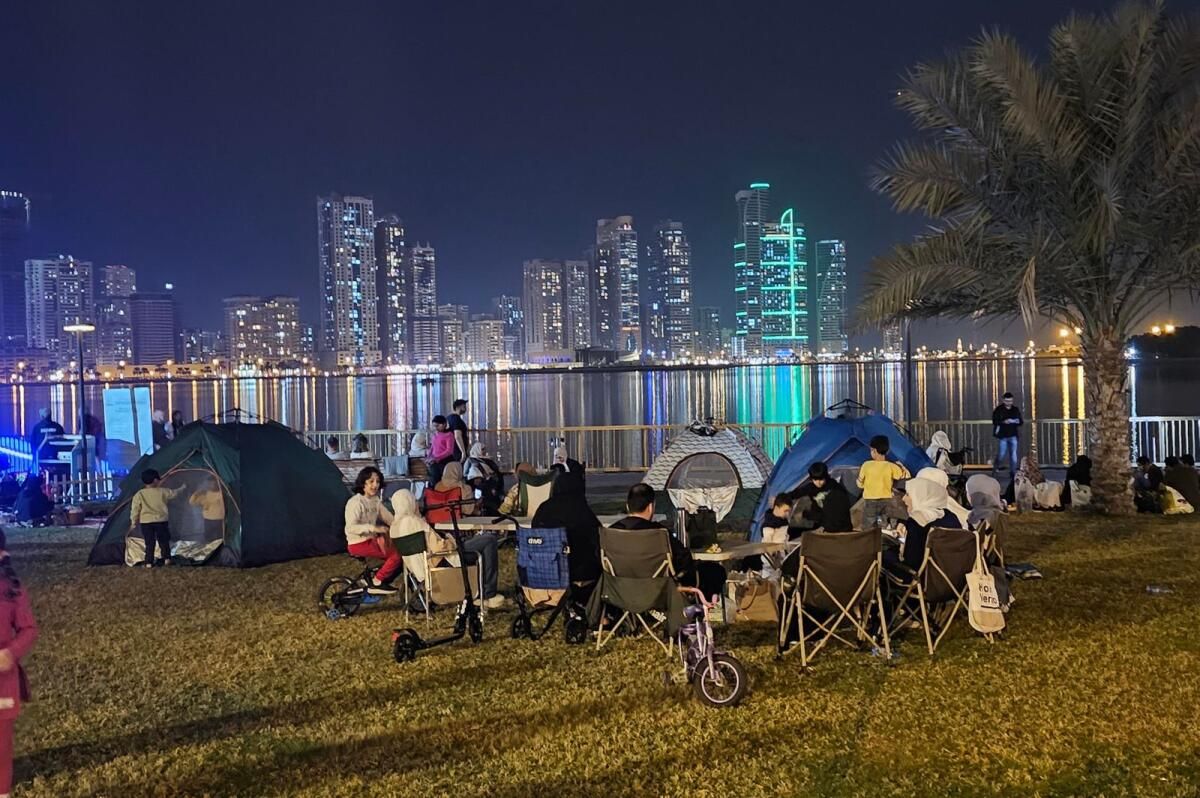 Saat gece yarısına yaklaştıkça, Sharjah’daki Al Majaz Corniche, göz kamaştırıcı Yeni Yıl havai fişeklerinin tadını çıkarmak isteyen aileleri çeken canlı bir kutlama merkezi haline geldi. Etkinlik sonrası trafiğin kaosundan kaçınmak amacıyla, birçok sakin gece kampına yöneldi ve kutlamalarını yıldızların altında huzurlu ve unutulmaz bir deneyime dönüştürdü.