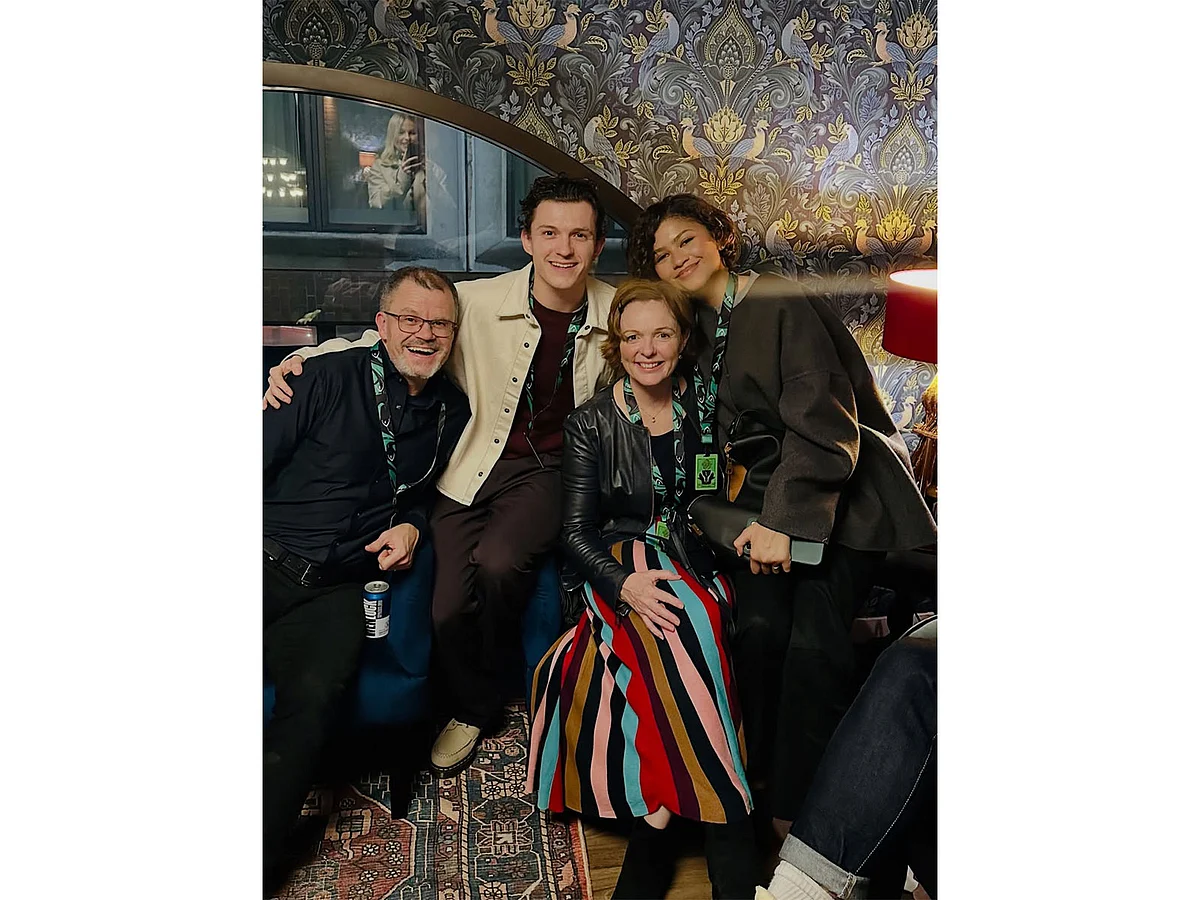 Sam Holland, geziden bir dizi fotoğraf paylaştı ve Zendaya ve Tom’un, ikincisinin ebeveynleriyle poz verirken neşeli göründüğünü gösterdi. Zendaya kısa bob saç modeli, gri bir kazak ve kırmızı dudaklarla spor yaparken, Tom bordo bir kazak giydi.