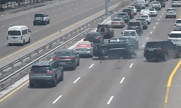 Bakın: Abu Dabi Sürücüsü Durmuyor, Araba Devrilirken Korkunç Kazaya Neden Oluyor