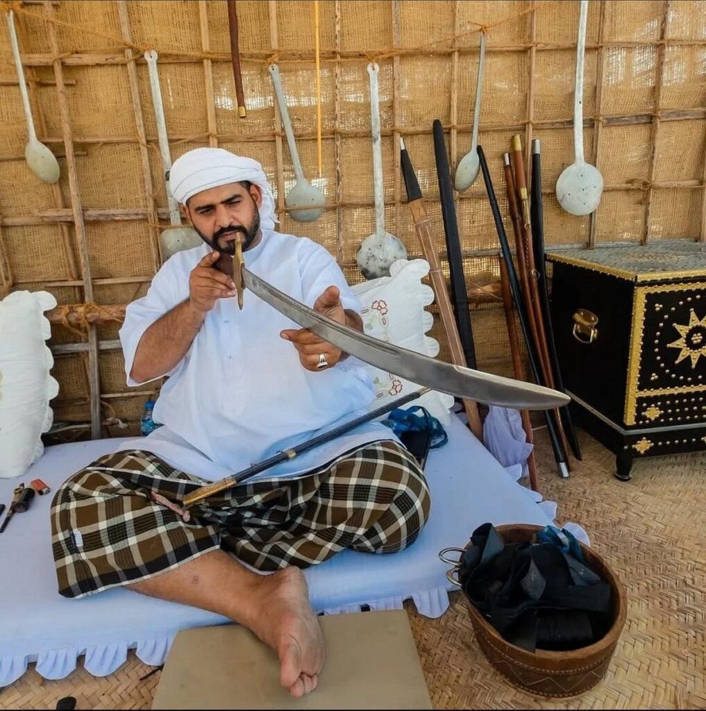 Fujairah’taki Dibba’dan gelen Raşid Abdullah El-Hüdaim El-Antali, yolculuğuna babasının çiftliğinden malzemeleri yeniden tasarlayarak başladı. “Babamın artık ihtiyaç duymadığı çiftliğinden orak alır ve onları bıçak haline getirmek için üzerinde çalışırdım” diye açıkladı.
