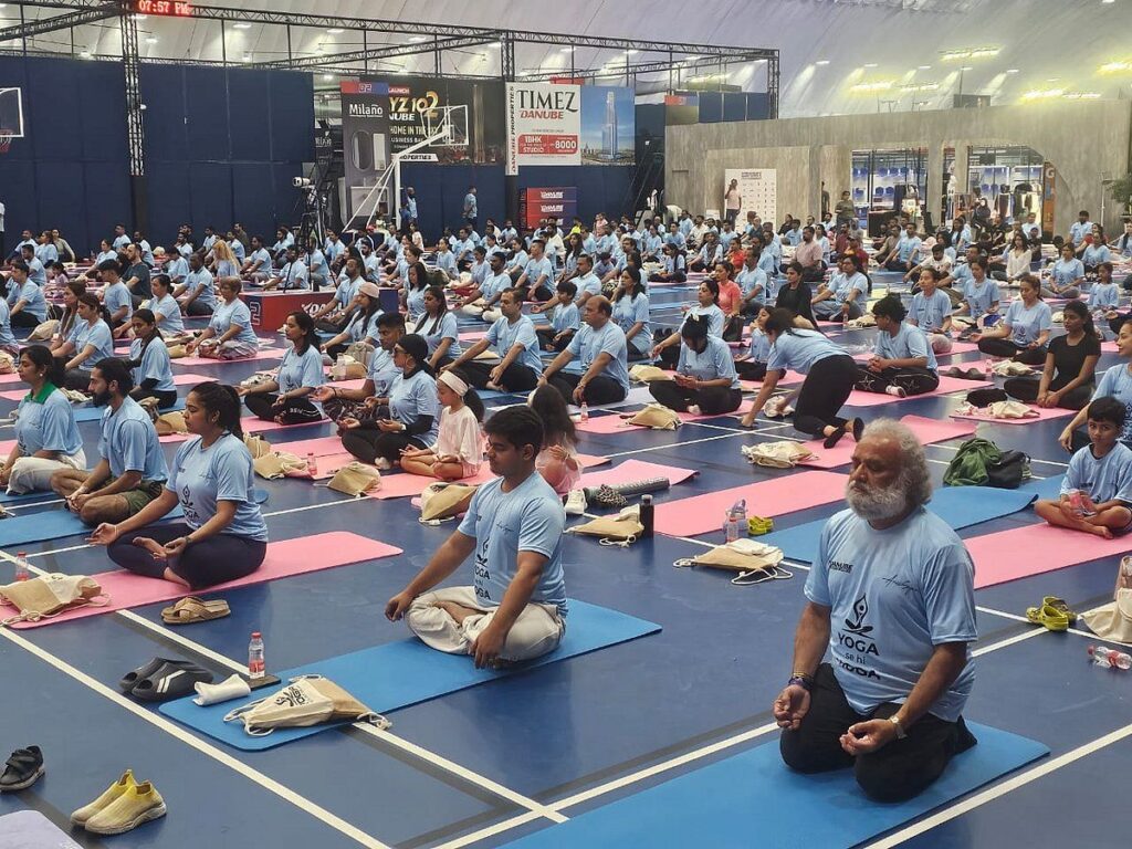Sharjah, akşam Dubai’deki Hindistan Başkonsolosluğu’nun Expo Centre Sharjah’daki yoga etkinliğine ev sahipliği yapmasıyla canlandı ve birçoğu resmi başlamadan çok önce gelen yüzlerce sakini çekti.