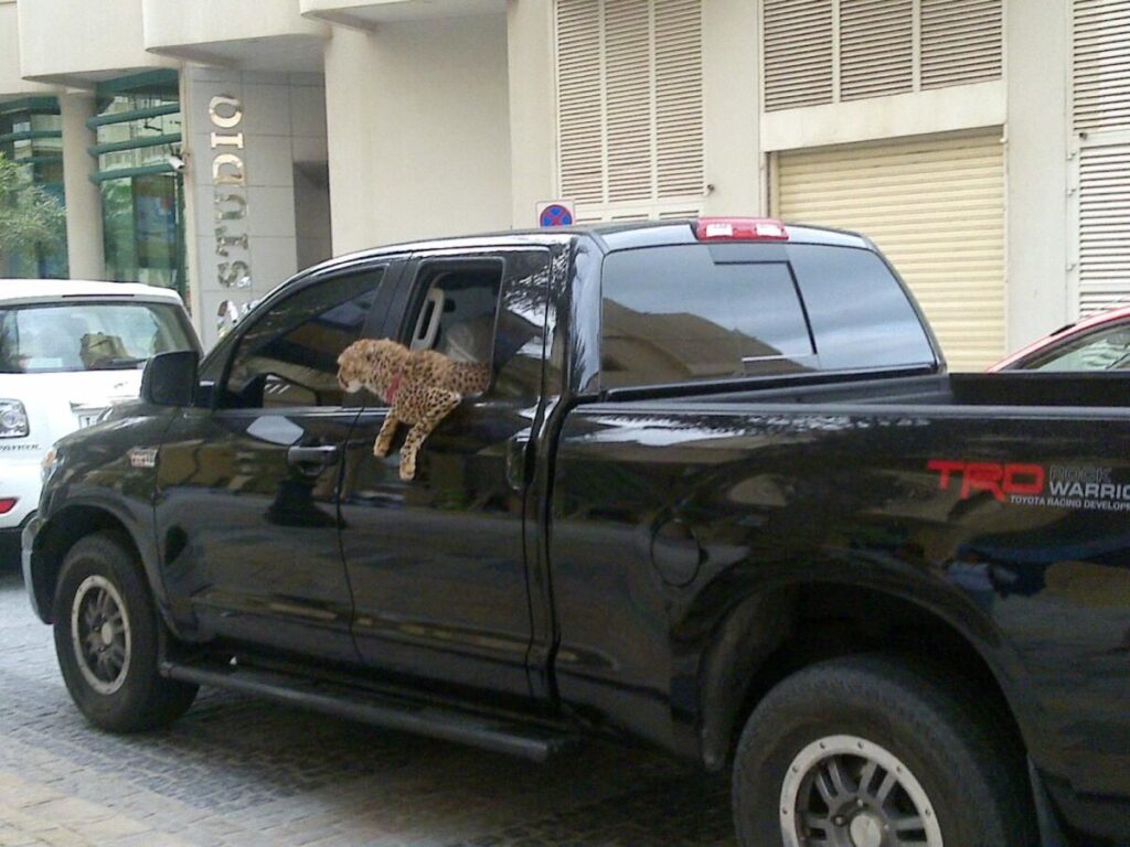 15 Aralık 2012: Jumeirah’ta bir aracın arka camından egzotik bir kedi dışarı bakıyor. ( Dosya Fotoğrafı)Sharjah Polisi hemen olay yerine geldi ve bölgeyi kordon altına aldı. Sonunda çitayı yakalamayı başardılar ve onu Çevre ve Doğa Rezervleri Kurumu’na teslim ettiler. Polis, sahibini bulmak için soruşturma başlattı.O zamanki Çevre ve Doğa Rezervleri Kurumu Genel Müdürü Hana Saif Al Suwaidi şunları söyledi: “Vahşi hayvanları evcil hayvan olarak tutmak Sharjah’ta nadir değildi.” Bir yıl içinde sokakta görülen üçüncü vahşi hayvandı. Daha önce, Sharjah yetkilileri tarafından oldukça zehirli bir yılan ve bir kaplan yakalandı. Sahipler, insanların hayatlarını tehlikeye atmak ve kamu güvenliğini riske atmakla suçlandı.