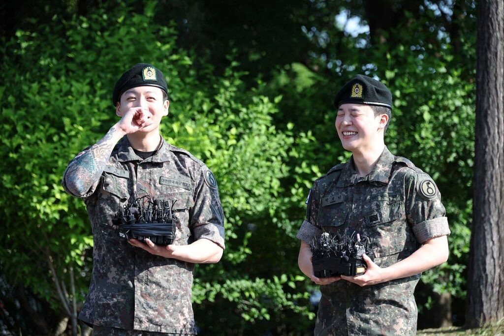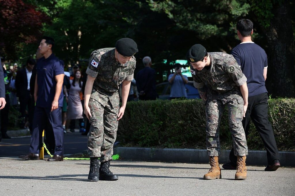 Jimin ve Jungkook K-pop grubu 4 GECE’ üyeleri Çarşamba günü bir aradan grubun geri dönüş beklentileri arasında ülkenin zorunlu hizmet tamamlamak için beşinci ve altıncı Güney Kore askeri taburcu edildi.