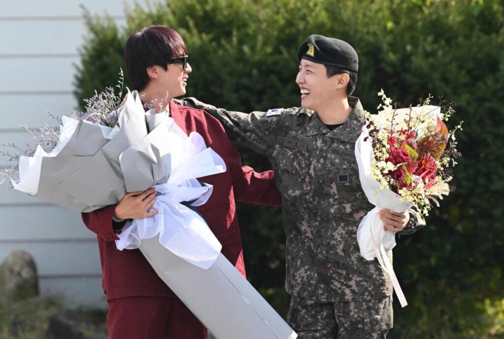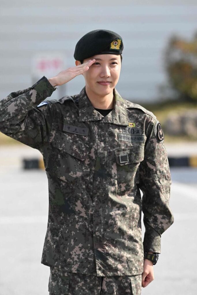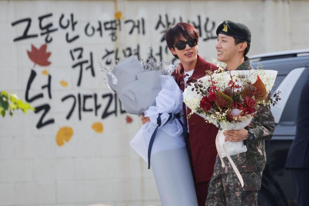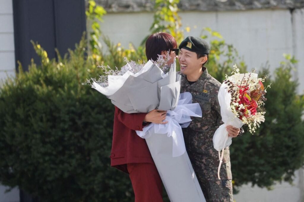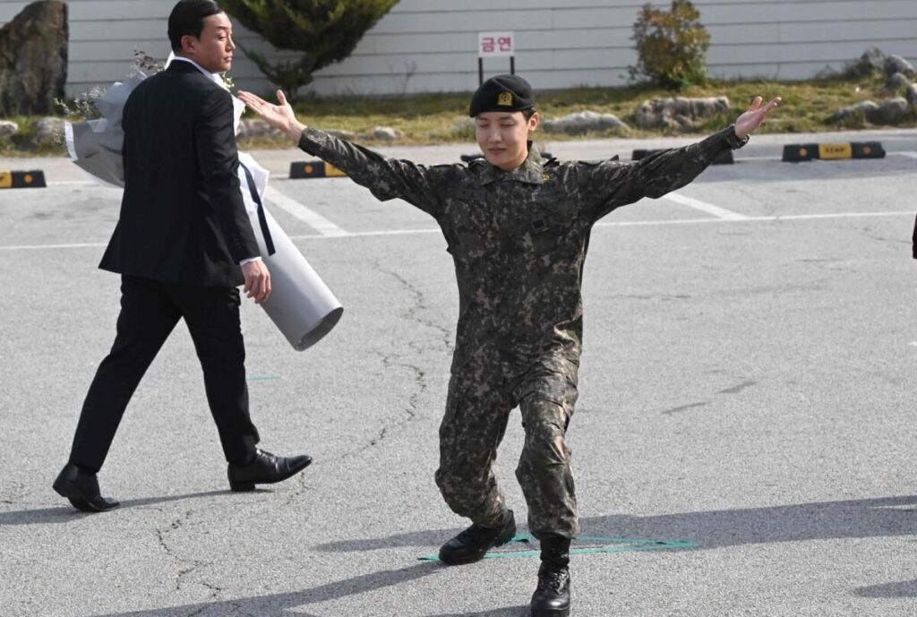 Taraftarlar, üssün dışında dans eden J-hope’dan yaşam boyu bir kesik koymuşlardı ve dev bir balon, tepeden uçan askeri taburcu olduğu için onu tebrik ediyordu.