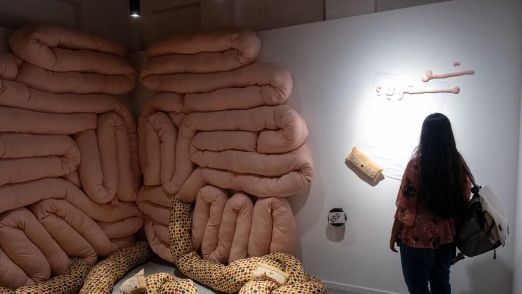 Suudi sanatçı Hadeel Ahmed El-Şalan’ın ‘Tatsız (Doğum Günü Baskısı)’ adlı 5 numaralı odası, doğum günü kutlamalarının evrimini vurguluyor.Oda 6’da Emirlik sanatçısı Ali Hamad Harimel’in Freej Fever Rüyası bulunmaktadır. Bu oda, bir büyükannenin evinden bir anı koleksiyonunu çağrıştırıyor. Popüler Emirlik TV programı ‘Freej’den esinlenen ve yapay zeka kullanan oda, geleneksel bir karakter yayıyor. Ziyaretçilerin büyükannelerinin evleriyle ilgili kendi anılarını yazabilecekleri bir duvara sahiptir.Bu arada Ummanlı sanatçı Hatice Ahmed’in ‘Dönüşüm Diyalektiği’ 7. Odada, büyükleri bir insanın fiziksel bedenini temsil eden balık dolması yer alıyor. Küçük olanlar, kökenini arayan ruhu temsil eder.