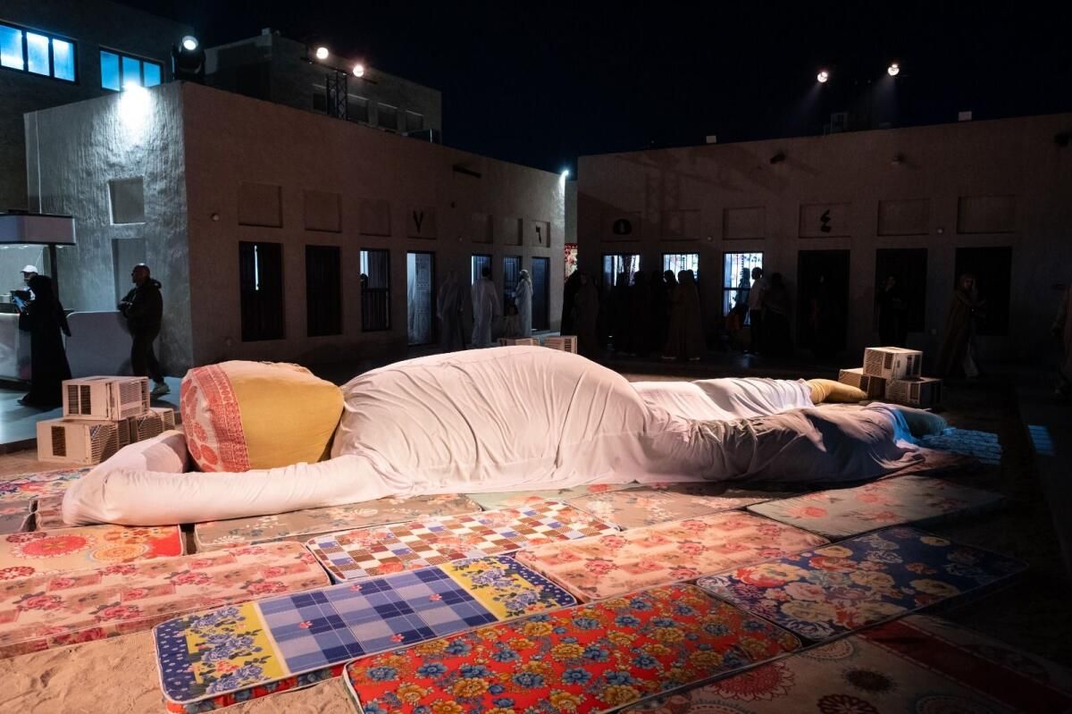 Festivale gelen ziyaretçiler. Fotoğraf: ShihabBahreynli sanatçı Mahmood Shreef’in 8 numaralı odası bir ses deneyimi sunuyor. Uyanma zamanı yaklaştığında ziyaretçinin rüyalarda alarmın nasıl çaldığını deneyimlediği karanlık bir odadır. Alarm sesi de rüyalarla örtüşüyor.Son olarak, 9. Odada Emirlik sanatçısı Latifa Al Awadhi’nin ‘Tepelerin Üzerinde Rüya Görmek’ adlı eseri, rüya ile gerçeklik arasındaki gerilimi simgeleyen yeşil tepeler ve bulutlardan oluşan huzurlu bir sahne sunuyor.Al Awadhi şunları söyledi: “Biriken bulutlar yaşamın baskılarını gösterirken, yeşil alan umudu ve hayallere ulaşma yolunu ifade ediyor.”