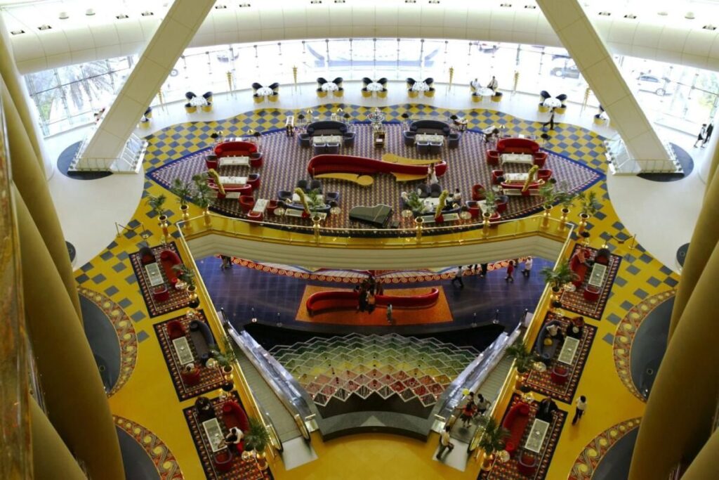 Charraudeau, konukların havaalanından Rolls Royce transferiyle — sekiz Gümüş Seraph filosuna sahip otelde — ya da 15 dakikalık bir helikopter uçuşuyla — şık bir şekilde geleceklerini belirtti.Personel seviyeleri, süit başına ortalama beş personele eşittir ve bu, dünyanın herhangi bir yerindeki herhangi bir lüks otel için son derece yüksek bir orandır. Burj Al Arab’ın iç tasarımı, Jumeirah Beach Hotel için kullanılan aynı tasarım evi olan Londra’daki Khuan Chew Associates tarafından yaratıldı.Geceleri, 142 projektör ekranı ‘yelkende’ sürekli değişen bir ışık ekranı sağlarken, otel genelinde toplamda yaklaşık 24.000 metrekareyi kapsayan 30’dan fazla farklı mermer türü kullanılmış, duvarlarda ve zeminlerde kullanılan mermer Statutario, Michaelangelo’nun yaratmak için kullandığı aynı taş heykel başyapıtları. 28.000’den fazla ışığı olan binanın iç tasarımında yaklaşık 8.000 metrekarelik 22 ayar altın varak kullanılmıştır.