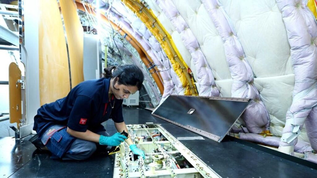 Bu süre zarfında, iç ve dış mekanın her santimi özenle kontrol edilir. Bir A380’i güçlendirme sürecinin tamamı yaklaşık 21 gün sürer.