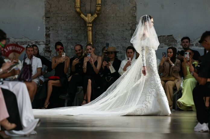 Savaştan zarar gören ülkesinin geleceği konusundaki iyimserliğini yansıtan bir koleksiyonda ipek, rulo krep kumaş, nakış ve boncuktan özenle yararlanarak pastel renklerde uzun pileli elbiseler modelleri gönderdi.53 yaşındaki AFP ‘ye daha önce verdiği demeçte, “Koleksiyonu ‘ışığın Koruyucusu’ olarak adlandırdık ve çok umut verici, çok umut verici bir zamanda geldi.” dedi.