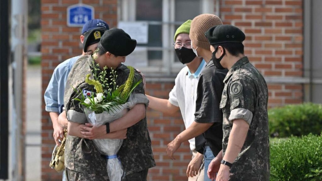 K-pop fenomeni bts’nin en eski üyesi olan Jin, müzik kariyerlerini askıya alan zorunlu ulusal hizmeti tamamlayan grubun ilk üyesi olan 18 aylık görevden sonra Çarşamba günü Güney Kore ordusundan terhis edildi.Televizyon görüntülerine göre, ordu üniforması ve siyah bere giyen 31 yaşındaki Jin, Gyeonggi eyaleti, Yeoncheon’daki bir askeri üssündeki meslektaşlarına sarılırken duygusal görünüyordu.Güney Kore medyası, şu anda orduda görev yapan eylül’ün diğer bazı üyelerinin olayı kutlamak için izin başvurusunda bulunduğunu bildirdi.Aralarında grubun hit single’ı ‘Dynamite’i çalmak için Jin’i saksafonla karşılayan rapçi RM de vardı.