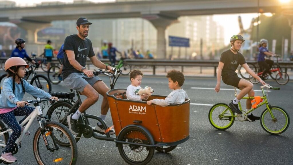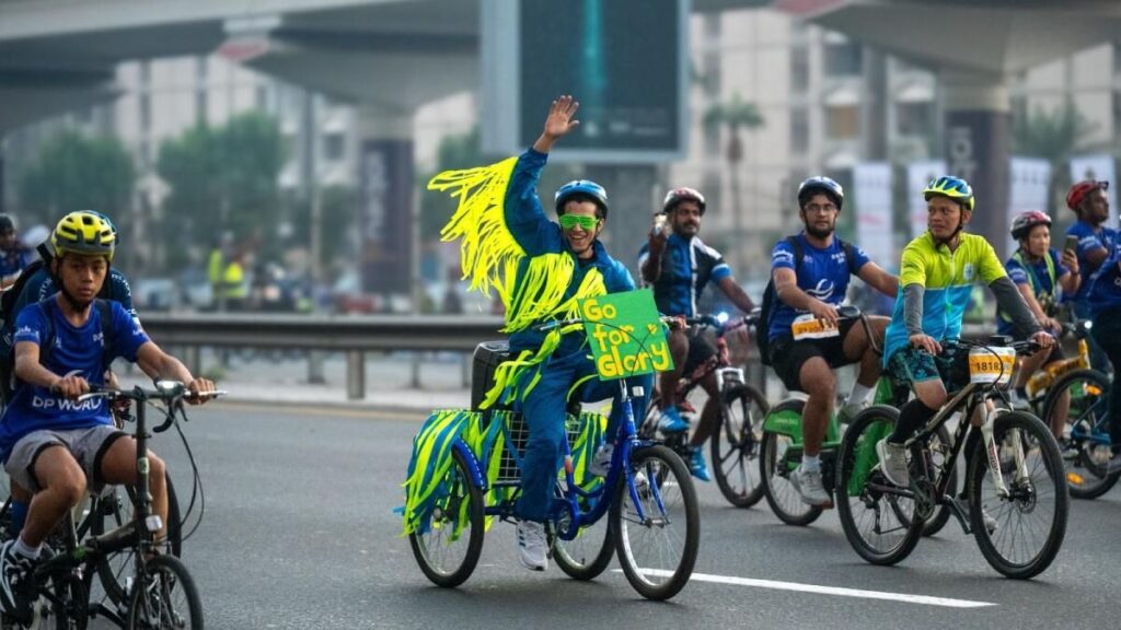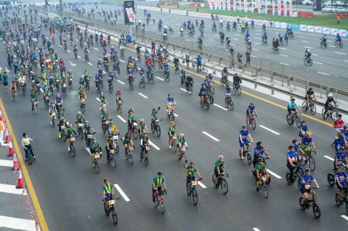 Dubai Polisinin siber kamyonlarının ve bir grup teslimat sürücüsünün önderlik ettiği canlı bir geçit töreni, 10 Kasım Pazar günü Dubai Yolculuğunun beşinci baskısını işaretledi. Turuncu renkli Talabat teslimat kutuları ile birlikte mavi ve beyaz siren ışıkları, Şeyh Zayed Yolu üzerinde gün ışığının kırıldığı ve onu çarpıcı bir bisiklet parkuruna dönüştürdüğü anda renkli bir başlangıç yaptı.