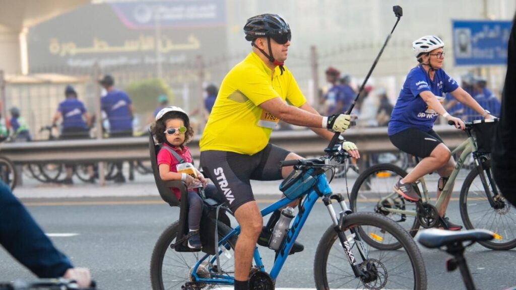 Bazı aileler çocuklarını ve gençlerini römork ve bisiklet koltuklarına getirirken, diğerleri küçük bisikletlerinde küçük bacaklarının taşıyabildiği kadar hızlı yükselmeyi seçti. Üç yaşındaki küçük Jannah, yaklaşık 5 km pedal çevirdikten sonra yorgundu ve babasının bisikletinin arkasındaki bisiklet koltuğunda oturarak yolculuğu tamamlamayı seçti.Ev arkadaşları Mark, Lala, Ang, Dave ve Joylynn art arda beşinci yıl etkinlik için geri dönüyorlardı. Mark, ”Bu bizim için yılın en çok beklenen olaylarından biri” dedi. “Yarışa zamanında gelmek için saat 4.30’da Deira’daki evimizden ayrıldık. Her yıl fotoğraflarımız aynı noktada çekiliyor. Neredeyse bağımızın bir kanıtı gibi.”