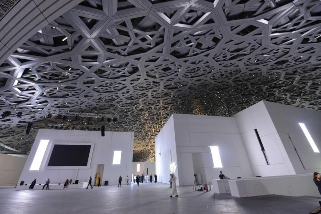 Havai fişekler gece gökyüzünü aydınlattı, yansımaları Arap Körfezi’nin sularında dans ederken Louvre Abu Dabi o gün resmen açıldı – 8 Kasım 2017.Müzenin gümüş tonlu kubbesinin altında – karmaşık Arabesk desenlerle delinmiş – hafif yağmur gibi süzülen ışık, aşağıdaki beyaz duvarlı galerilerin üzerine büyüleyici bir parıltı saçıyordu.Bu kubbenin altında duran ziyaretçiler, Bedevilerin bir zamanlar hurma ağaçlarının arasına sığındığı vahaya çok benzeyen bir vahada korunuyormuş gibi başka bir zamana taşındıklarını hissettiler.