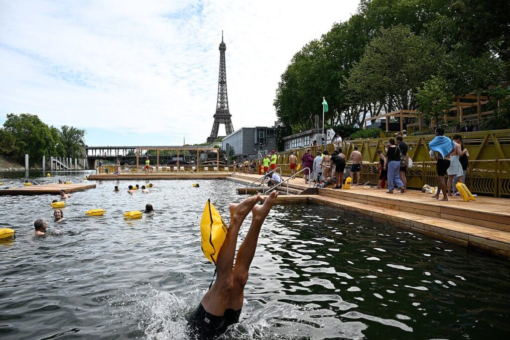 Bu yaz serinlemek isteyen Parisliler ve ziyaretçiler, Eyfel Kulesi’nden bir taş atımı da dahil olmak üzere üç banyo sahasında floresan sarı tişörtlerle cankurtaranların dikkatli gözetimi altında — hava izin veriyorsa — dalabilirler.