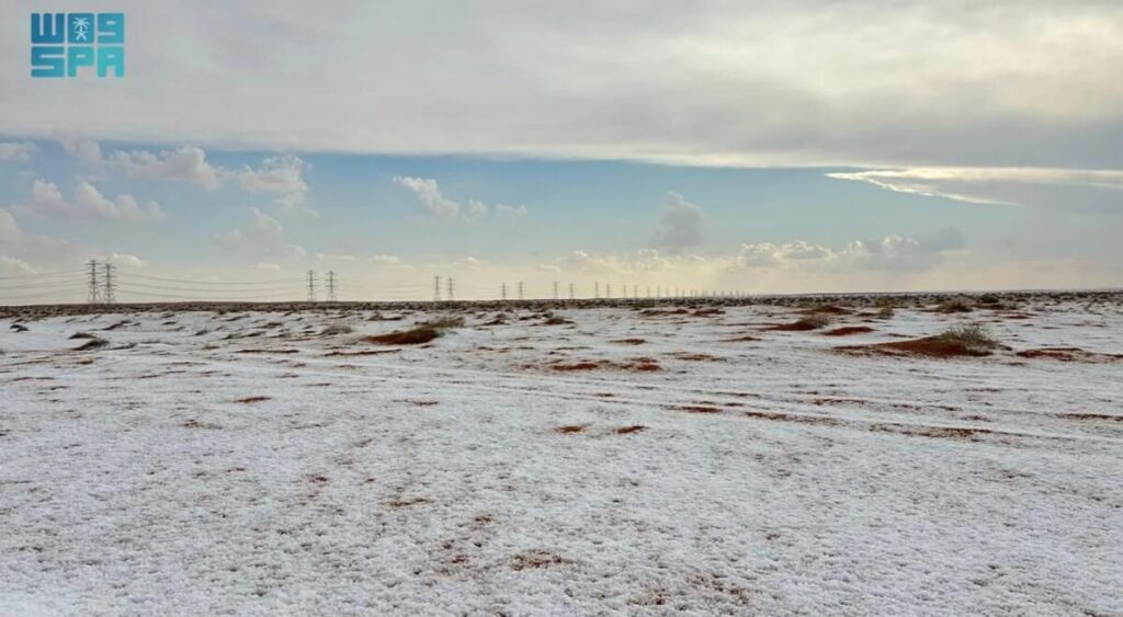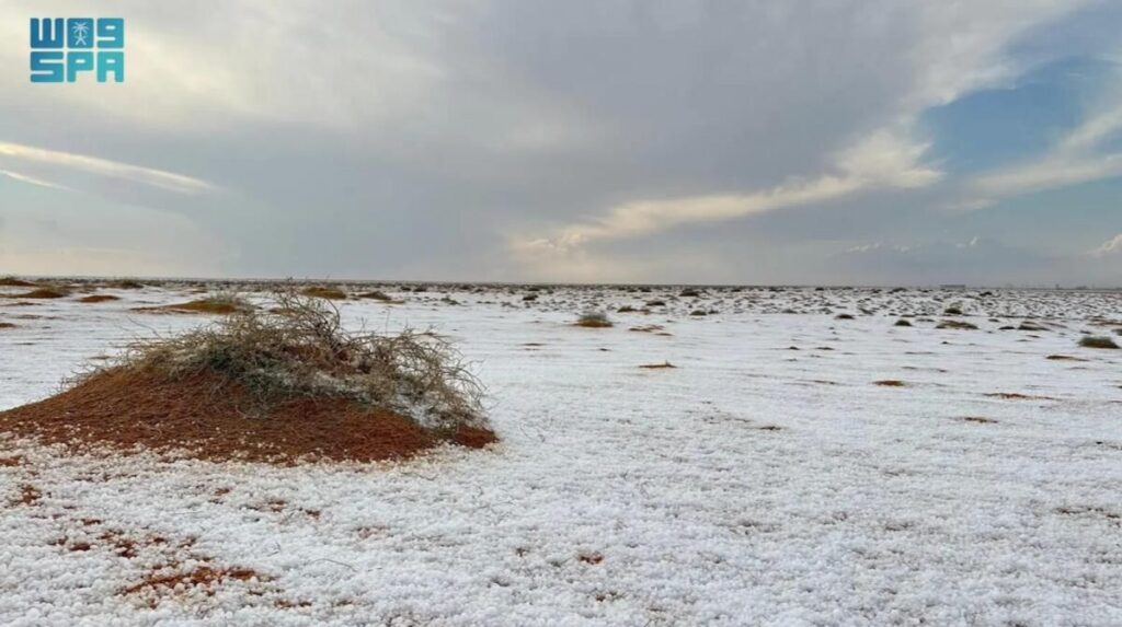 Suudi Arabistan’ın bazı bölgelerinde şiddetli yağışlar ve dolu yağışı dağlara bozulmamış beyaz kar getirirken soğuk bir dönem yaşanıyor.Suudi Basın Ajansına göre, geçen Çarşamba gününden bu yana, büyük miktarda dolu yağışının eşlik ettiği şiddetli yağışlar, Krallığın El-Cevf bölgesinin bazı bölgelerini sardı. Daha dün, kar yağışı dağlık alanları kaplayarak çarpıcı bir kış manzarası yarattı.Bu şiddetli yağışlar aynı zamanda şelaleleri de harekete geçirerek vadilere hayat veriyor ve kışa yeni bir başlangıç yaparak bahar mevsiminin önünü açıyor. Lavanta, krizantem ve çok sayıda aromatik bitki gibi ilkbaharda mevsimlik kır çiçekleri ile tanınan El-Cevf’in manzarası, son yağışlarla zenginleşen doğal güzelliklerle doludur.