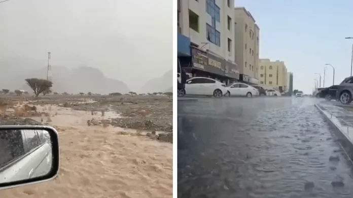 İnternette dolaşan videolar, arabaların su basmış yollarda dolaştığını ve tekerleklerin kahverengi sulara sıçradığını gösterdi. Ras Al Khaimah’ta öğleden sonra yağmurlar devam ederken çöl yolları nehirlere dönüştü.