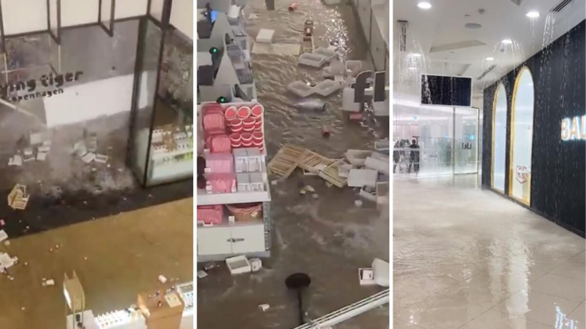 WhatsApp ve Tiktok’ta tur atan böyle bir videoda Mall of the Emirates’te tavandan su fışkırıyor. Tavandan bir parça bile düştü. Bazı mağazalar hasarı kontrol altına almak için kepenklerini indirmişti.