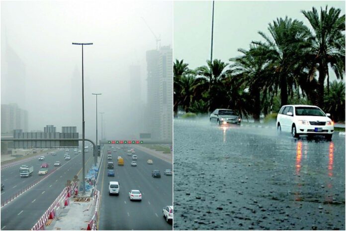 Dubai’deki sürücüler ve taşıtlar, 17 yıl önce düşük görünürlük ve tozlu koşullarda yollarda gezinmek zorunda kalırken, doğu dağlarındaki gök gürültülü fırtınalar Al Ain’e sağanak yağışlar getirdi.