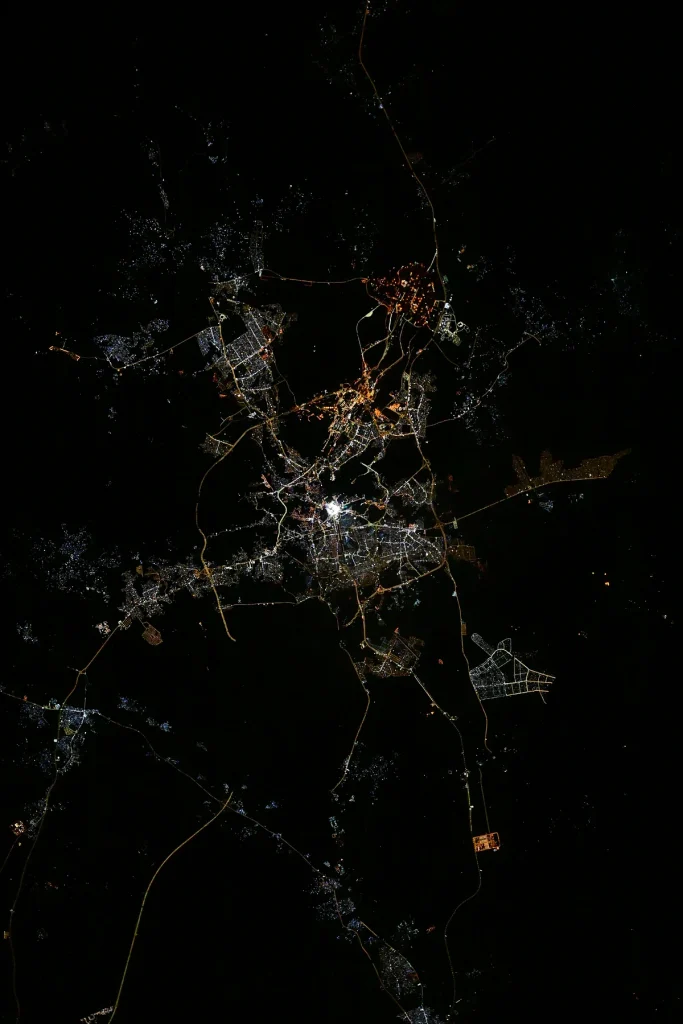 Pettit, “Mekke, Suudi Arabistan’ın yörünge görüşleri. Merkezdeki parlak nokta, İslam’ın en kutsal yeri olan ve uzaydan bile görülebilen Kabe’dir.”