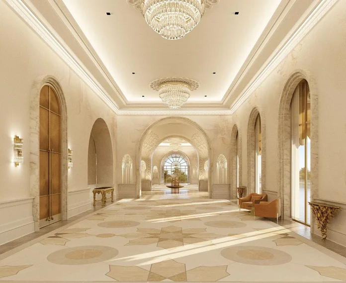 Tesisin kalbinde yer alan Coral Court, 7.708 metrekarelik bir alana yayılacak ve 2.633 metrekarelik sütunsuz Büyük Balo Salonu, özel gelin ve damat salonları, erkekler ve kadınlar için özel dua odaları, altı toplantı odası ve 1.390 metrekarelik bir etkinlik alanı içerecektir. Basra Körfezi. Roma tarzı pencerelerle çerçevelenen Büyük Balo Salonu, düğünleri, konferansları ve diğer toplantıları barındıran çok yönlülük için tasarlanmıştır.