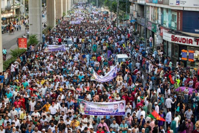 Polis, Cumartesi günü “komplocu” olarak nitelendirdikleri 10 protestocuyu tutukladı ve onları yaklaşık 170 milyonluk Güney Asya ülkesini istikrarsızlaştırmaya çalışmakla suçladı.