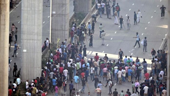 Bangladeş’te Pazar günü meydana gelen çatışmalarda polisin Başbakan Şeyh Hasina’yı istifaya çağıran on binlerce protestocuyu dağıtmak için göz yaşartıcı gaz ve plastik mermi sıkması sonucu en az 73 kişi öldü ve yüzlerce kişi yaralandı.Hükümet, geçen ay başlayan mevcut protestolar sırasında ilk kez böyle bir adım attığı Pazar günü saat 6’dan (1200 GMT) başlayarak ülke çapında süresiz sokağa çıkma yasağı ilan etti. Ayrıca Pazartesi gününden itibaren üç günlük bir genel tatil ilan etti.