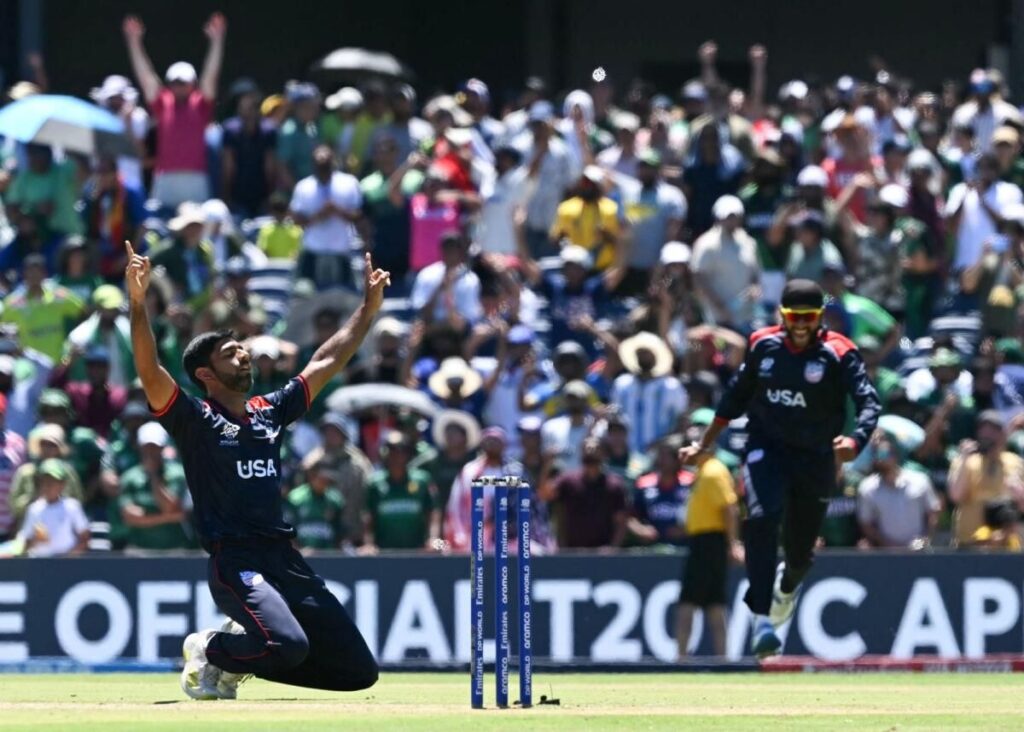 Saurabh Nethralvakar (solda), ABD’nin ICC T20 Dünya Kupası’nda Pakistan’ı yenmesine yardım ettikten sonra kutluyorAmerika Birleşik Devletleri, Teksas’taki bir T20 Dünya Kupası grup maçında Asya devleri Pakistan’ı yendiklerinde krikete en büyük üzüntülerinden birini verdi.Pakistan ilk önce 159-7’ye ulaştı ve minnows, Amerika’nın Hindistan doğumlu paceman’ı Saurabh Netravalkar’ın tarih yaratmak için son altı topta cesaretini tutmasıyla berabere kalan maçın Süper Bitmesine karar verilmeden önce aynı skoru başardı.Pakistan daha sonra birinci turda turnuvadan düştü, ABD ise Süper Sekizler aşamasına ilerledi