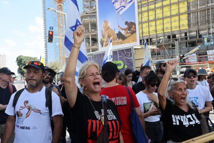 Göstericiler İsrail bayraklarını salladı ve ülke çapındaki mitinglerde ıslık, korna ve davul yankılanırken rehinelerin fotoğraflarını taşırken, bazı protestocular Kudüs ile Tel Aviv arasındaki ana yol da dahil olmak üzere sokakları ve otoyolları kapattı.