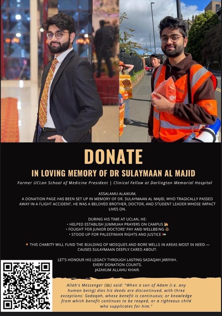 County Durham ve Darlington NHS Foundation Trust’ta klinik araştırmacı olan 26 yaşındaki Dr. Sulaymaan Al Majid, 26 Aralık 2024’te bir gezi uçuşunda trajik bir şekilde hayatını kaybettiğinde ailesiyle tanışmak için bae’yi ziyaret ediyordu.