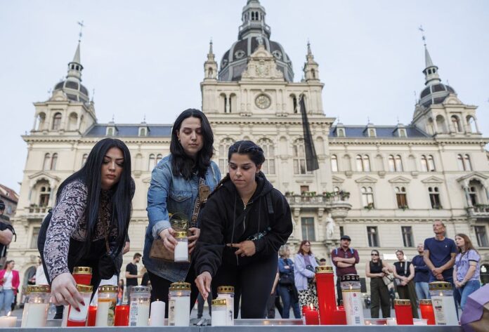 Avusturya’nın ikinci şehri trajediyle uzlaşmaya çalışırken yakındaki bir çitin üzerinden büyük bir siyah bayrak olan “Graz bir arada duruyor” asıldı.