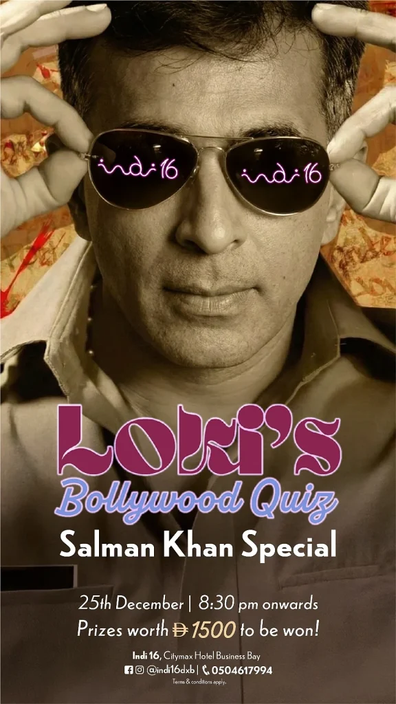 Bu Noel, Business Bay’deki Indi 16, 25 Aralık’ta RJ Loki’nin ev sahipliği yaptığı Salman Khan temalı bir sınav gecesi ile Bollywood masala’yı festival sezonuna getiriyor. Bhai’nin doğum günü haftasında düzenlenen yüksek enerjili akşam, hayranlarını Indi 16’nın canlı, renkli atmosferine karşı ikonik diyaloglar, unutulmaz sahneler ve Salman’ın her şeyi hakkındaki bilgilerini test etmeye davet ediyor. Loki’nin ruh halini canlı tutan ticari marka mizahıyla konuklar, bol bol kahkaha, yüksek sesle tezahürat ve RAK konaklama, Noel sepetleri ve F & B ve alışveriş kuponları dahil olmak üzere 5.000 Dh değerinde ödüller kazanma şansı bekleyebilir ve bu da onu eğlenceli hale getirebilir. birleşik Arap Emirlikleri.