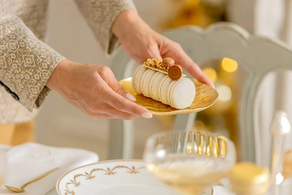 Bu festival sezonunda Ladurée, ünlü illüstratör Daria Song ile şiirsel bir işbirliği ile hayata geçirilen Hesperides’in efsanevi Bahçesinden ilham alan zarif bir tatil koleksiyonunu tanıtıyor. Parlak altın ve beyazla kaplanmış koleksiyon, doğayı, efsaneyi ve inceliği, fındık süngeri, tuzlu karamel, fındık kreması ve Guanaja bitter çikolatalı mus katmanları içeren hoşgörülü Çikolatalı Karamel ve İspahan Yule Kütüğü de dahil olmak üzere göze çarpan ikramlarla kutluyor. tek tek porsiyonlar için Dh55 ve büyük porsiyonlar için Dh349. Festival kadrosunda ayrıca iki sınırlı sayıda macaron tanıtılıyor: Kestane kreması ve krep dentelle dolu kestane ve baharatlı çikolatalı hatmi ve kakao uçlarının yer aldığı Sıcak Çikolatalı Hatmi, her ikisi de Dh15’te fiyatlandırılıyor.