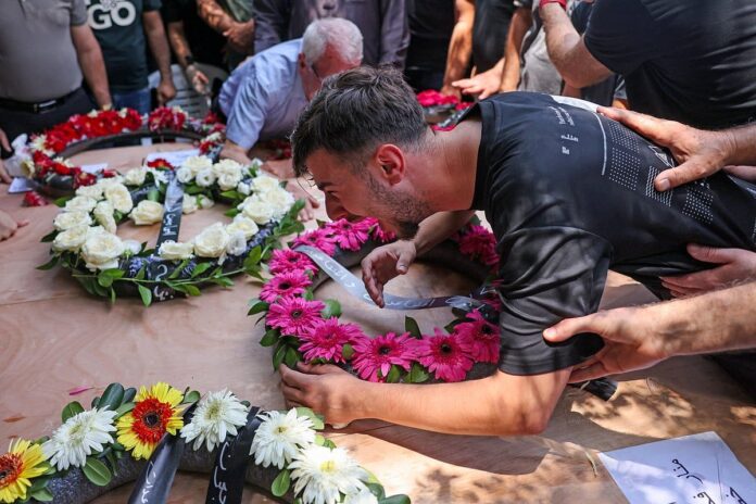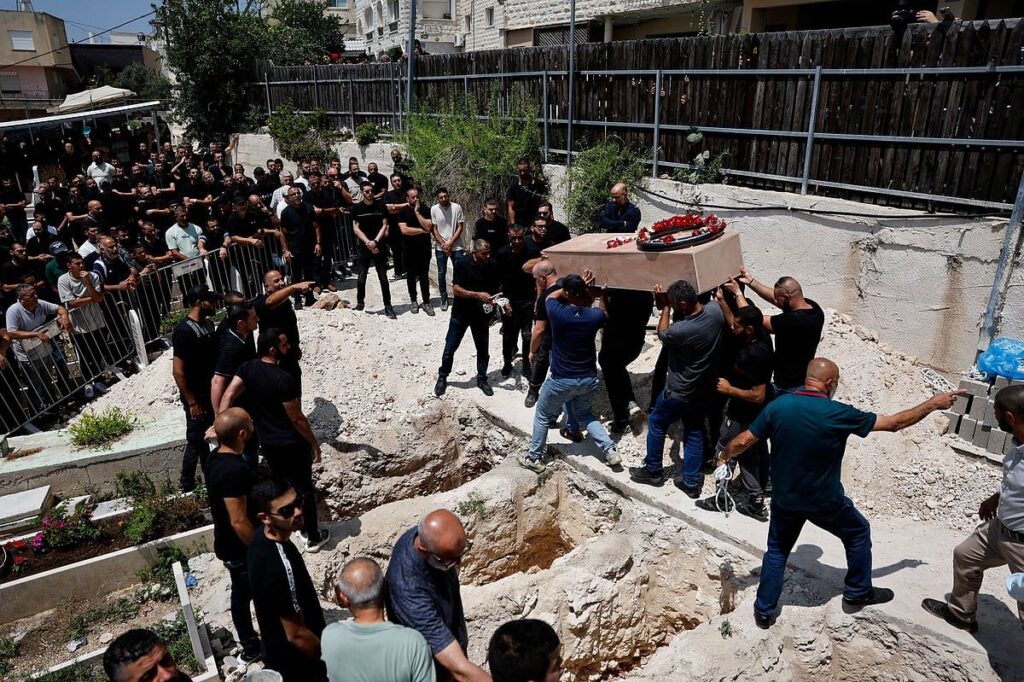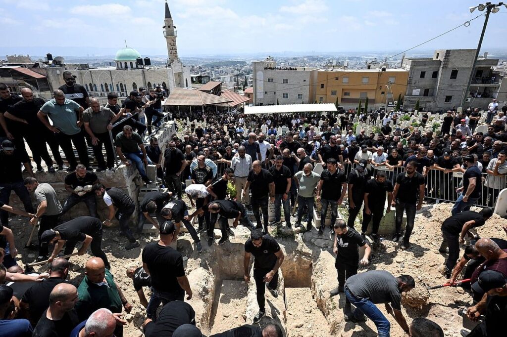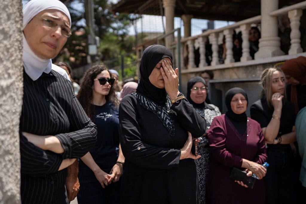 Rengarenk çelenklerle süslenmiş ahşap tabutların kasabanın mezarlığına taşınmasını izlemek için yüzlerce hıçkıran sakin Salı günü Tamra’nın dar sokaklarında kalabalıklaştı.