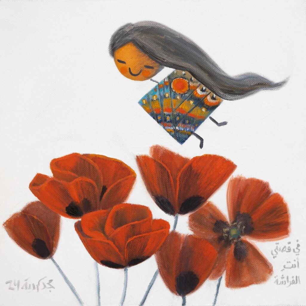 2020’de ‘Güneş Bayrağını Kaldırmaya Devam Edeceğiz’ serisinde, Arapça’da olduğu gibi sabrın erdemini temsil eden kaktüs tanıtıldı. kaktüs ve sabır aynı kök harflere sahiptir. ‘Karpuz Barışı’ başlıklı 2021 koleksiyonu, sarsılmaz sevgi, inanç ve iç huzurun keşfi tasvirleriyle insanlığın artan huzursuzluğu ve kargaşasıyla yüzleşiyor. 2023’te ‘Rüyanın Kanatları’, uçuş özgürlüğünü ve varoluşun kısacık doğasını vurgulayan kuşlara odaklandı. Eserleri Berlin, Ürdün, Milano, Kahire ve Manama da dahil olmak üzere dünyanın çeşitli galerilerinde sergilendi. Eserleri, Dr. Zaki Nusseibeh’in özel koleksiyonu ve Atassi Vakfı da dahil olmak üzere Orta Doğu’da ve yurtdışında kamu ve özel koleksiyonlarda yer almaktadır.Kurdieh’in gerçekliği ve hayal gücünü birleştiren rüya gibi sanatı, tüm dünyada hayranlar buldu ve 500’den fazla eserinin satışına yol açtı. Fann A’ Porter gallery ayrıca Shop Fasaeen markası altında kelebek çetesini içeren bir dizi ürünü de stoklamaktadır. Kurdieh, ”Sanatın insanlarla bağlantı kurması gerekiyor“ diyor ve ekliyor: “Sanatçıların yarattıkları ile insanların istedikleri arasındaki dengeyi bulmaları gerekiyor. Ruhun ve kalbin ruh hali elin hareketiyle birleştiğinde, o zaman en iyi kreasyonları elde edersiniz.”Sanatsal süreci yalnız ve kapsamlıdır, onu meditatif bir duruma getirdiğini söylediği en sevdiği eğlence olan balık avına düşkünken birkaç saatlik iç gözlem içerir. Ayrıca karakterlerini geliştirmek için beyin fırtınası yapıyor ve eskizler yapıyor ve doğru renk kompozisyonlarını elde etmek için dijital yardımlar kullanıyor. Paylaştığı yaratıcılığının altında yatan güç her zaman sevgidir. “Benim sanatım mahabbah (Arapça aşk) tüm yaratıklar için. Hayatımızdaki canavarları yok etmek ve medeniyetsiz tarafımızı elimizden almak için sanatın saflığına ihtiyacımız var “diyor.