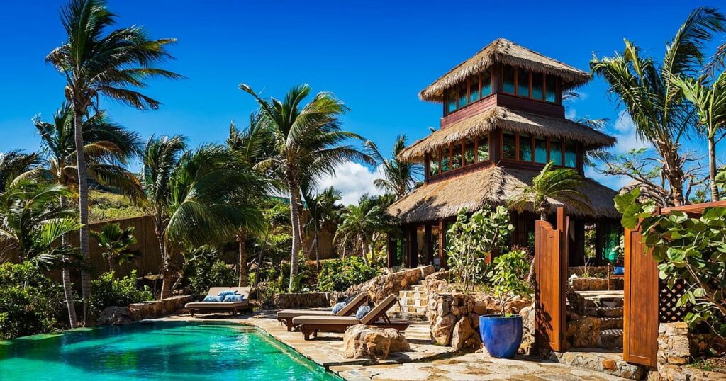 Milyarder Sir Richard Branson’a ait olan 30 hektarlık Necker Adası, mercan resifleri ve çarpıcı beyaz kumsallarla çevrilidir. Adanın kendi ticari havalimanı olmadığı için, sadece komşu havalimanlarından birine özel jetle inerek ve kısa bir tekne veya helikopter yolculuğu yaparak ulaşılabilir. “Necker Adası ünlülerin ve diğer yüksek profilli misafirlerin uğrak yeridir ve bir seferde birkaç düzineden fazla insanı ağırlayamaz. Bir oda rezervasyonu yapabilir veya adanın tamamını kiralayabilirsiniz ”dedi. “Birincisini seçerseniz, tüm yemekleriniz, içecekleriniz, su sporları ekipmanlarınız, transferleriniz ve özel personelinizle Bali tarzı bir villada lüks konaklama imkanı bulacaksınız.”